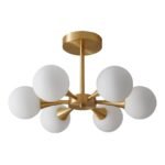 Грло: 6xЕ27 Димензии: Ш:55цм В:30цм Материјал: Метал, Стакло Боја: Златна Вклучена сијалица: Не Јачина: Max 40W Волтажа: 220-240v Заштита: IP20 Димабилност: Во зависност од сијалицата